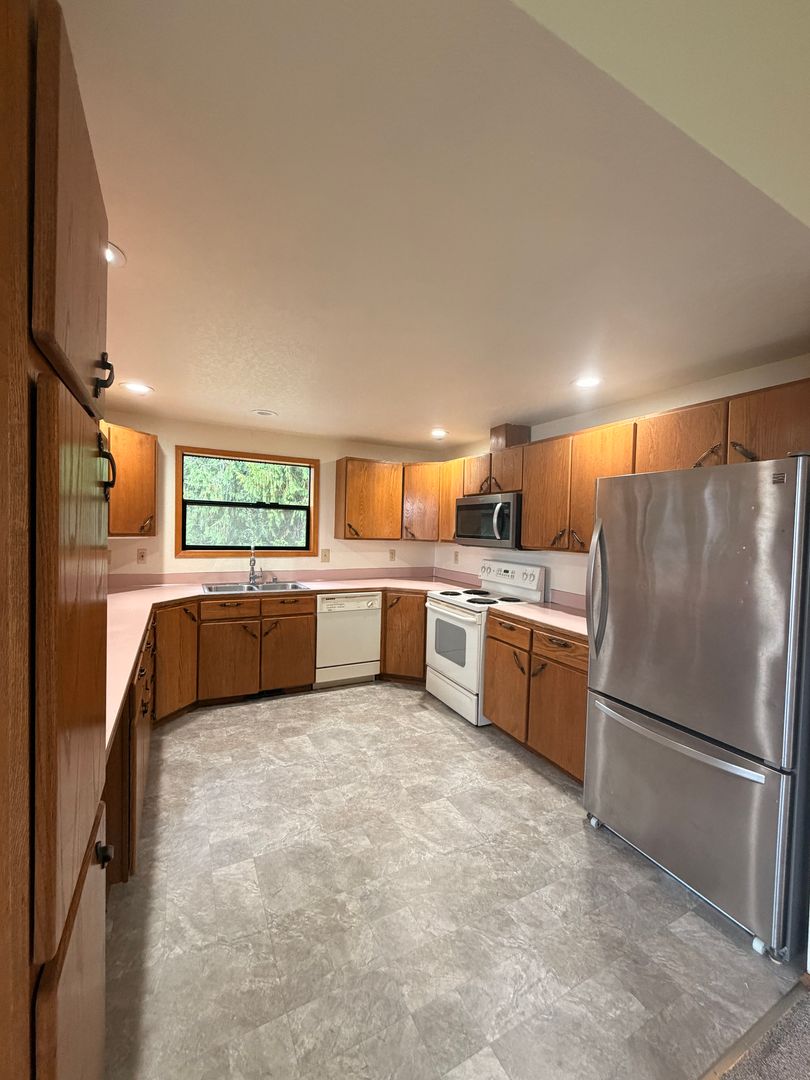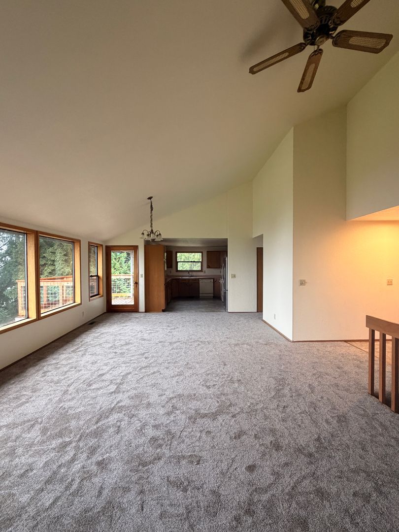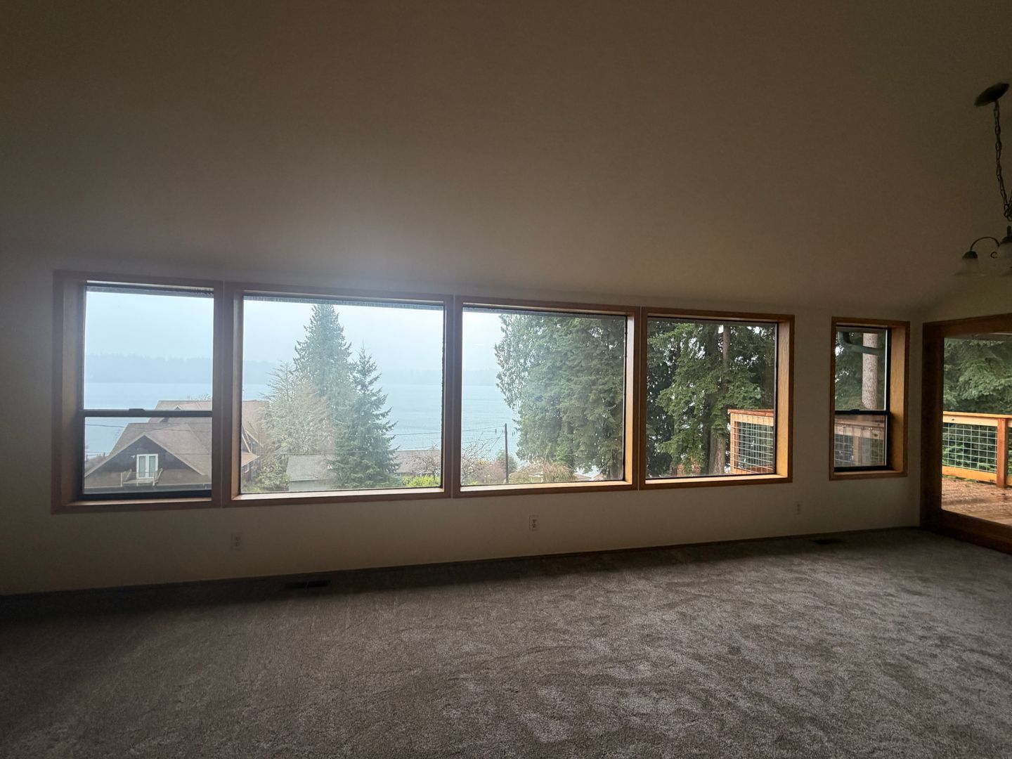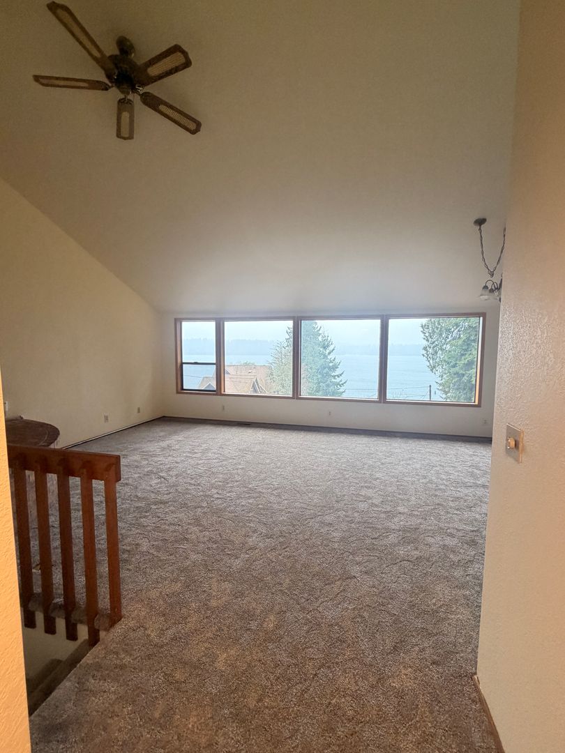 Welcome to your new home in Bremerton, WA! This 2-bedroom, 3-bathroom unit in side-by-side duplex offers a spacious living area with a vaulted ceiling, ceiling fan, new flooring, and a propane fireplace for those cozy nights in. The open-concept design connects the living area to a well-equipped kitchen, perfect for entertaining. The primary bedroom features two closets, one a walk-in closet and a full bathroom for your convenience. Enjoy the breathtaking mountain and water views from the comfort of your living room and deck, accessible from the dining/living room. The home also includes a laundry room with a washer and dryer, a large unfinished basement with storage rooms, and a covered patio space outside the basement. Parking is a breeze with a paved parking area, a 1-car attached carport with a storage closet, and covered RV parking with electric. The home also comes with a heat pump with A/C for your comfort, and yard care is included, so you can spend more time enjoying your new home, those views and the local wildlife. Experience the perfect blend of comfort and convenience in this Bremerton home. Located minutes from HWY 303 and in the Central Kitsap School District. Experience the perfect blend of comfort, convenience, and style in this Bremerton home. Security deposit same as rental rate, tenant pays all utilities. Sorry no pets please. (BY, AR)