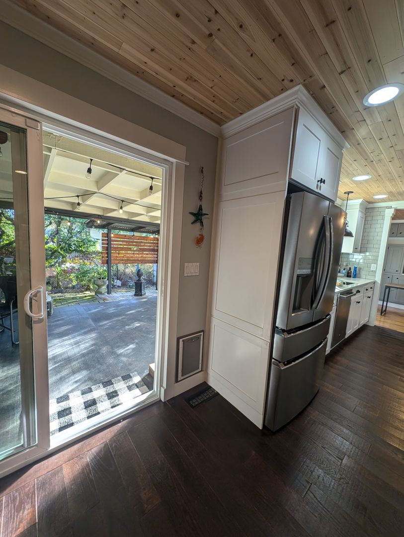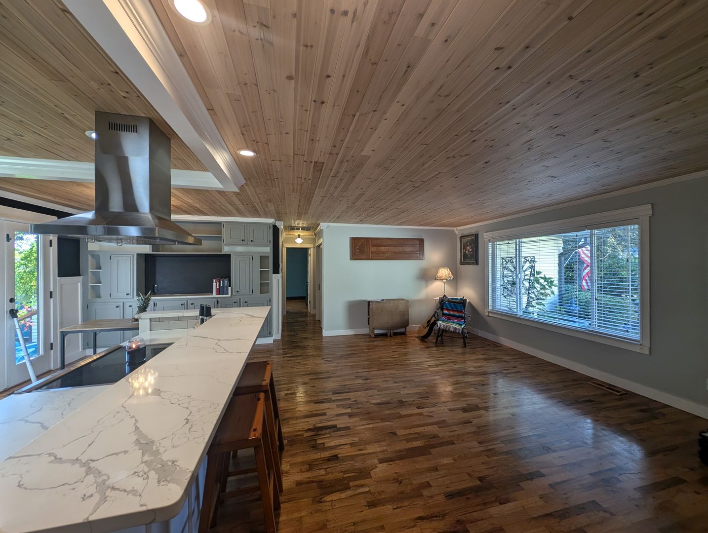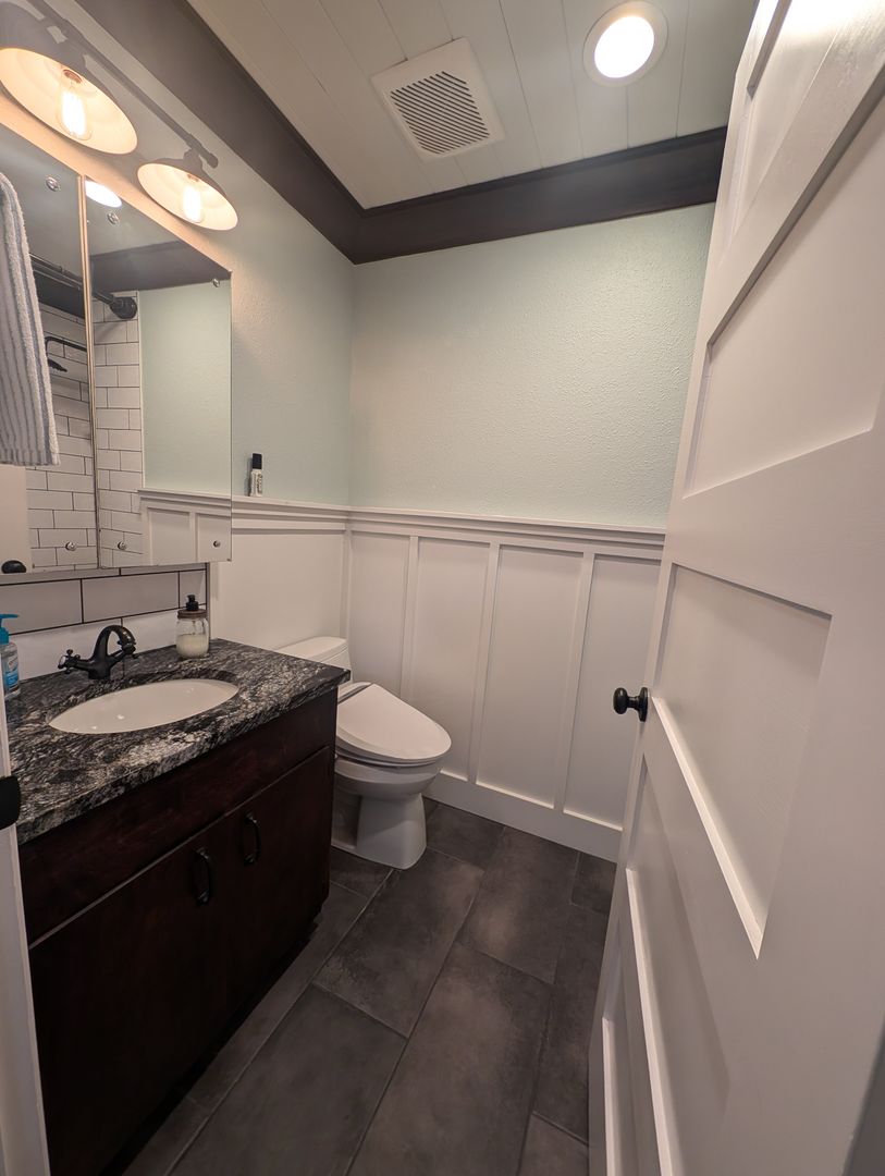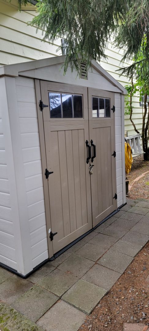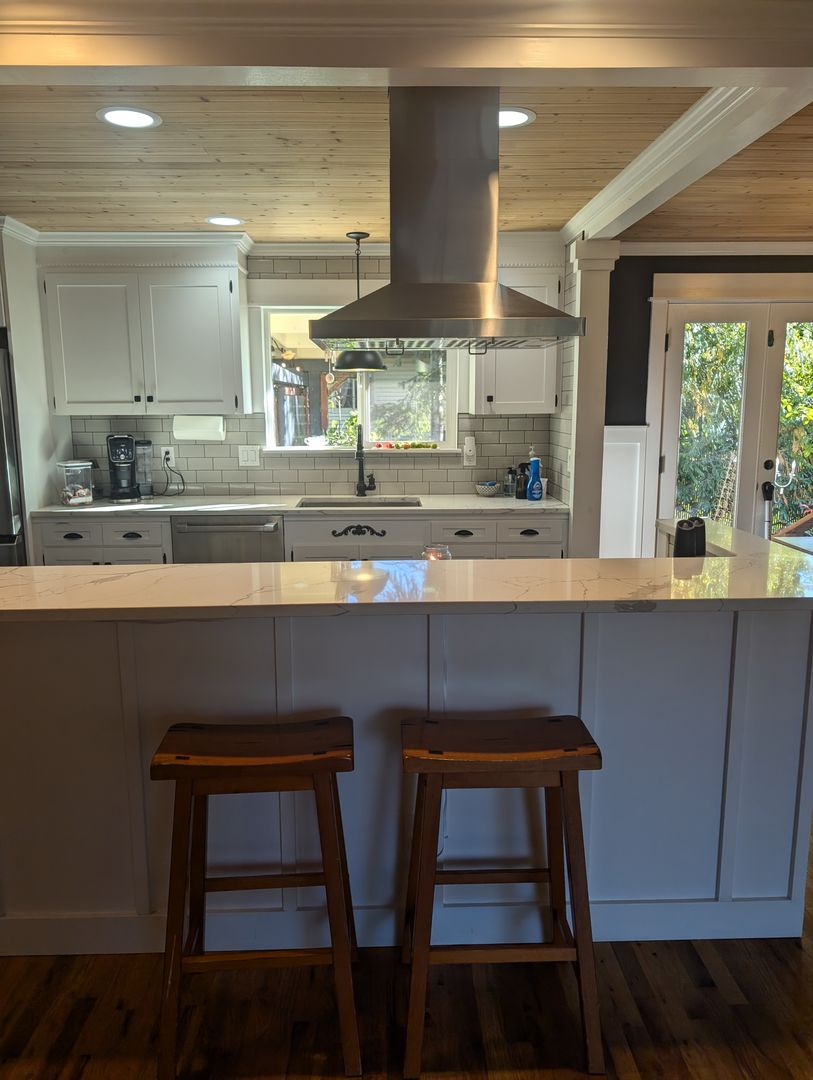 Welcome to this stunning single level 4-bedroom, 2-bathroom home in Bremerton, WA. This beautifully updated house features a landscaped yard, large-covered backyard patio off living room with wall mounted TV*, heat pump with A/C for year-round comfort and hardwood flooring throughout. The remodeled kitchen boasts beautiful quartz countertops, stainless steel appliances and eat at bar, perfect for any home chef. Enjoy cozy nights by the gas fireplace watching your favorite show on the included 70" wall-mounted TV* above. Primary bedroom includes two closets and ceiling fan, and the bathroom includes custom walk-in tiled shower with built in shelving. The laundry room includes a front load washer and dryer for added convenience with floor to ceiling storage space. Step out into the garage equipped with a workbench, shelving and large safe (garage not for vehicle storage, motorcycle okay). Additional amenities include wood planked ceilings throughout, fresh interior paint, storage sheds, and keyless entry for added security. With 2 parking spaces in the carport and all the extras included, this home has everything you need. Don't miss out on this Central Kitsap gem! Schedule a showing today and make this house your new home!
