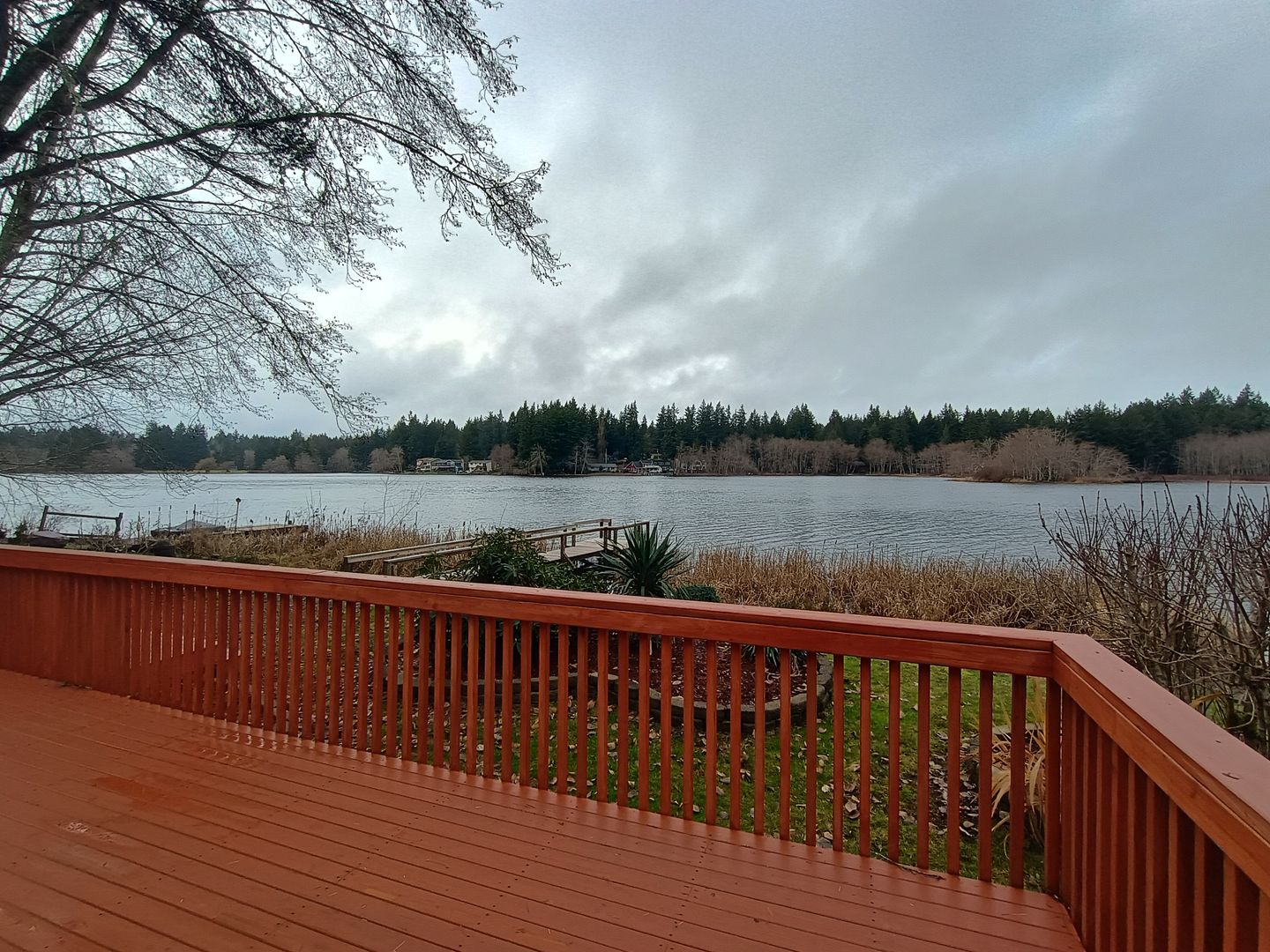 Wake up to water views and a front-row seat to nature. This exceptional lakefront home is positioned so close to the shoreline that the view feels immersive and ever-changing. Expansive windows fill the home with natural light while framing the peaceful lake beyond. Step out onto the newer deck to unwind and enjoy daily wildlife sightings—birds overhead, salmon in the water, river otters, deer, and more.