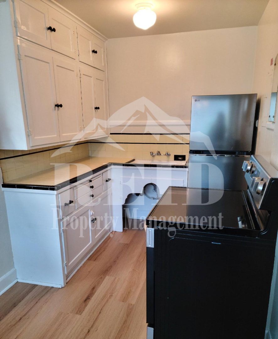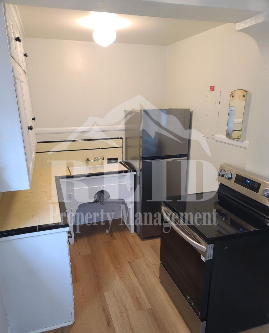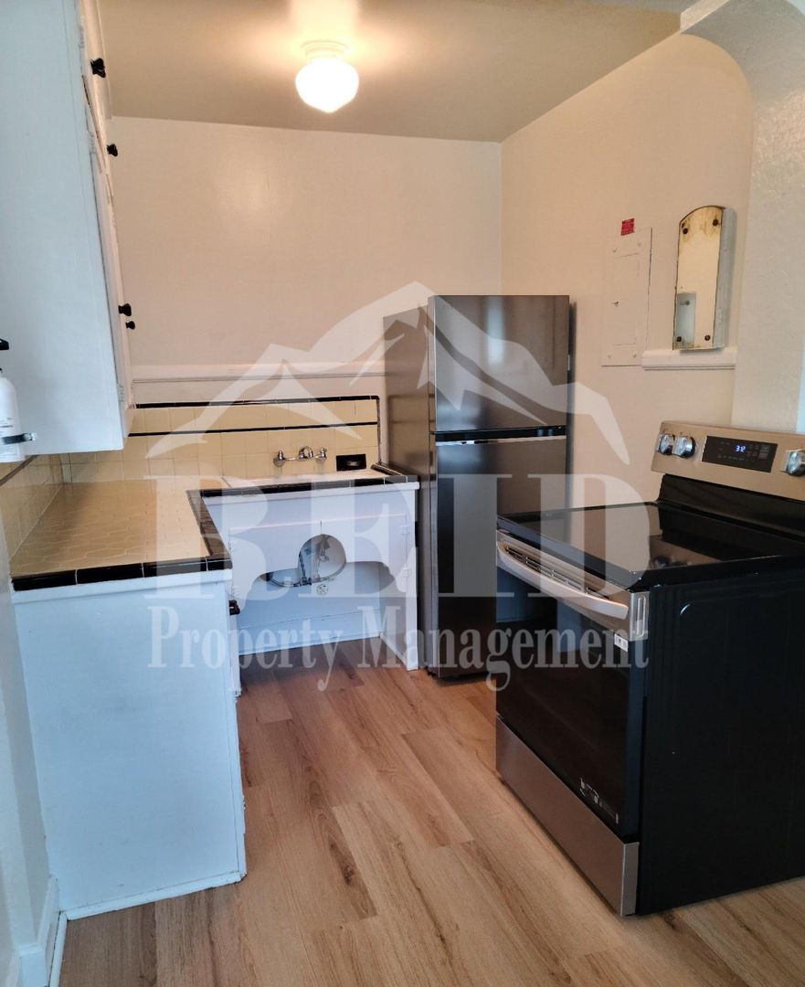 Welcome to the Character and Charm apartment, a delightful one-bedroom, one-bathroom residence located in the heart of Bremerton, WA. This apartment is conveniently situated within walking distance to the Ferry and Shipyard, making it an ideal location for those who value accessibility. The apartment boasts an old-world charm with archways, original hardwood floors, and a gas fireplace for heat, complete with a remote for your convenience. Fresh interior paint and the kitchen and dining room combo features new laminate wood flooring, a new stainless-steel refrigerator, and a NEW flat-top stainless-steel stove, offering a modern touch to the space. The bathroom also features new laminate wood flooring, adding to the apartment's fresh and updated feel. The apartment provides ample storage with a storage locker and plenty of closet space. Window coverings are included for your privacy. The building is secured with access control for your peace of mind. A shared laundry facility with new washers and dryers is available for your convenience. The apartment also offers a shared fenced outdoor space for you to enjoy. A monthly utility fee of $125 covers water, sewer, trash, and hot water. Experience the perfect blend of character, charm, and modern amenities at this Bremerton gem.